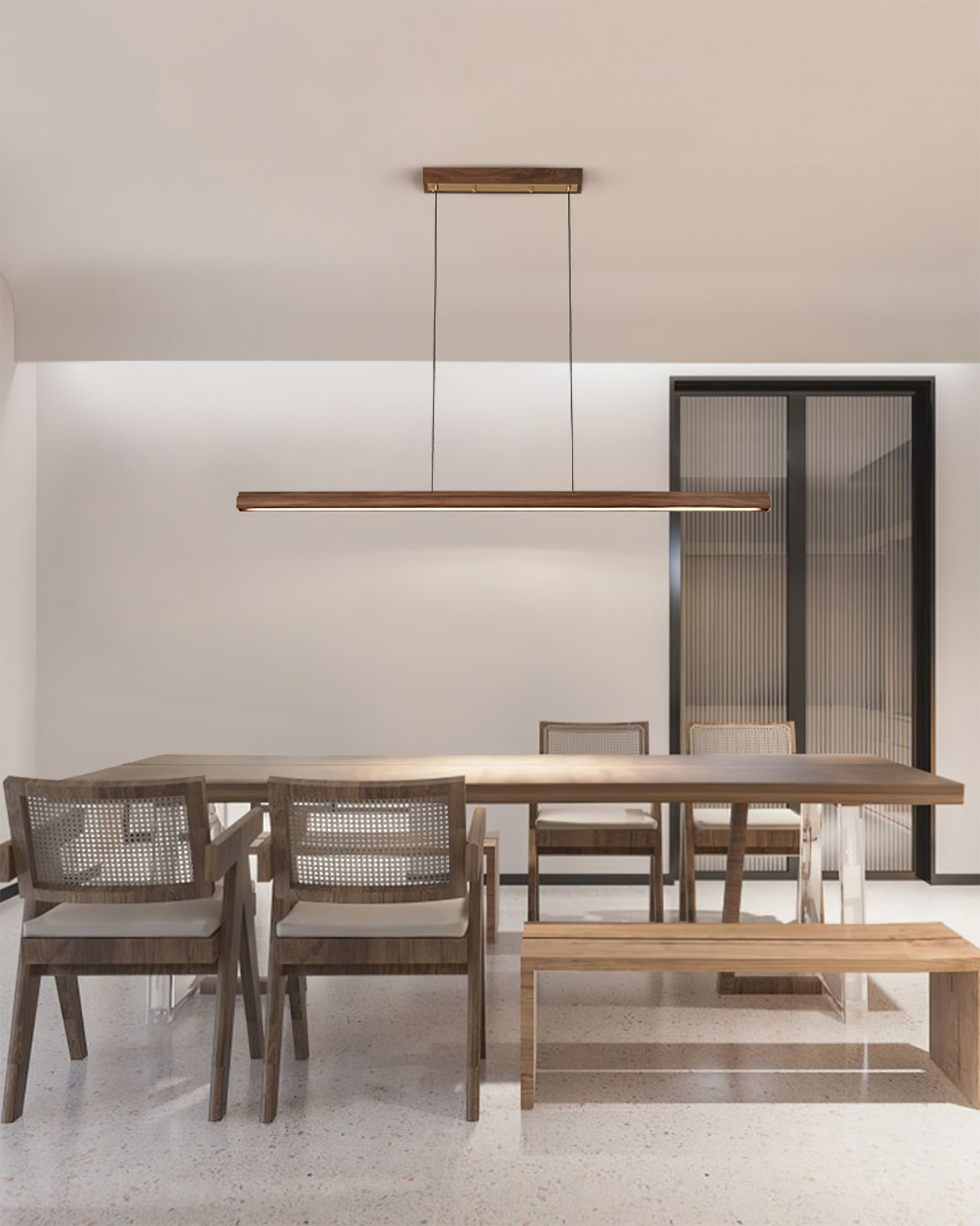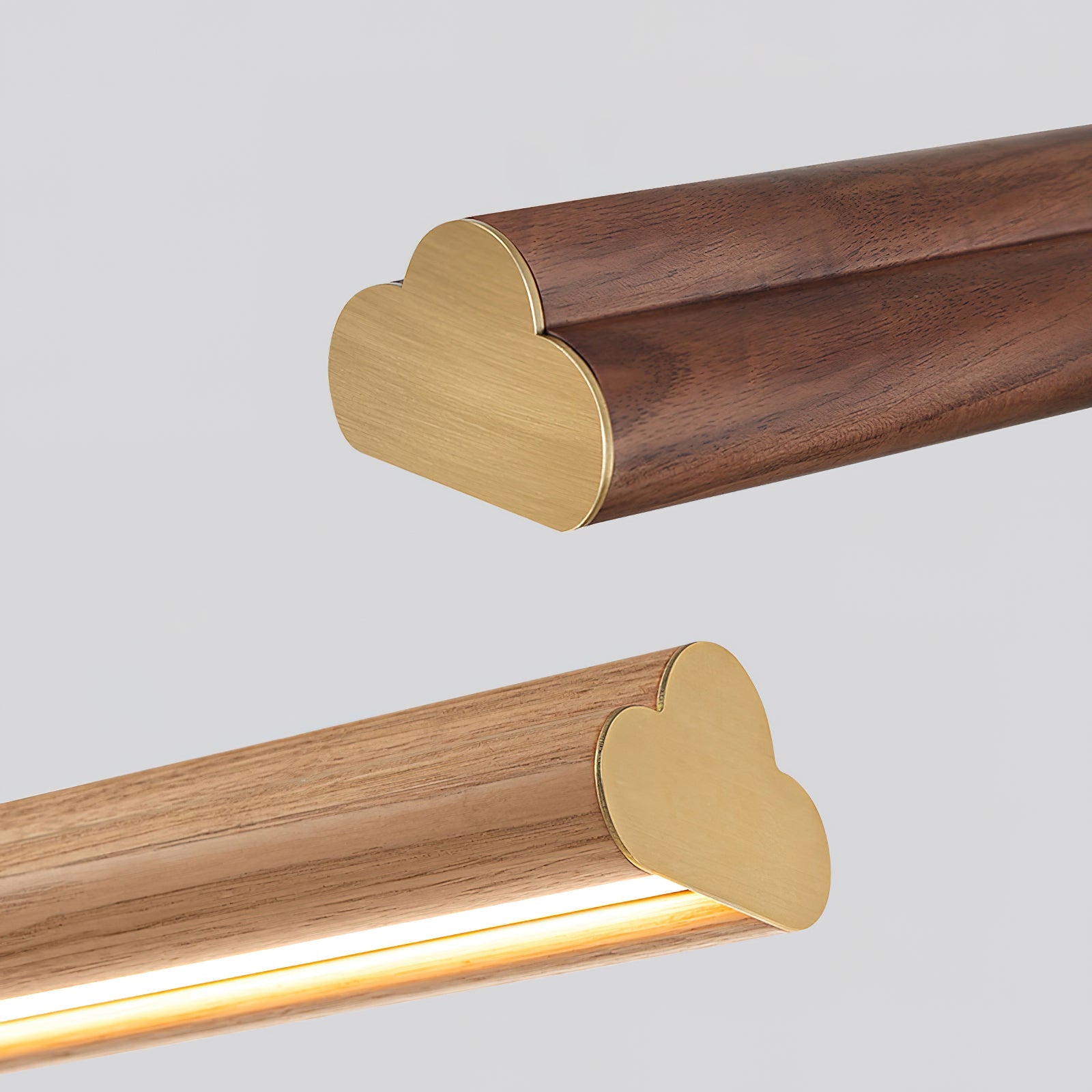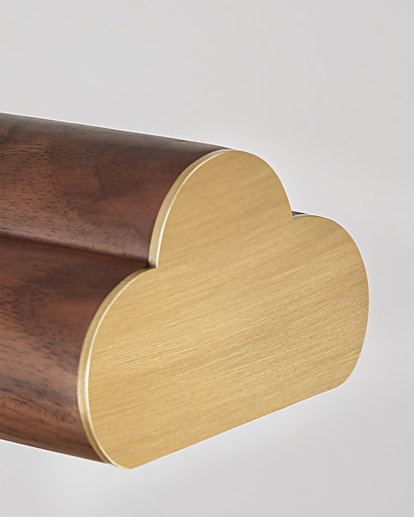 The Aimee Cloud Chandelier by dekorfine merges sculptural elegance with a whimsical twist. Crafted from rich wood and brushed brass. its standout feature is the cloud-shaped end detail. adding a soft. imaginative silhouette to a linear form. Ideal for dining areas. workspaces. or minimalist interiors. this piece brings both warmth and character while maintaining clean. architectural lines.