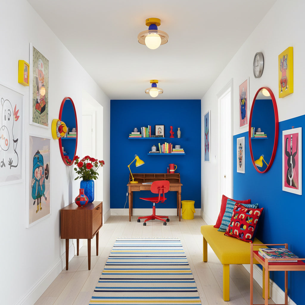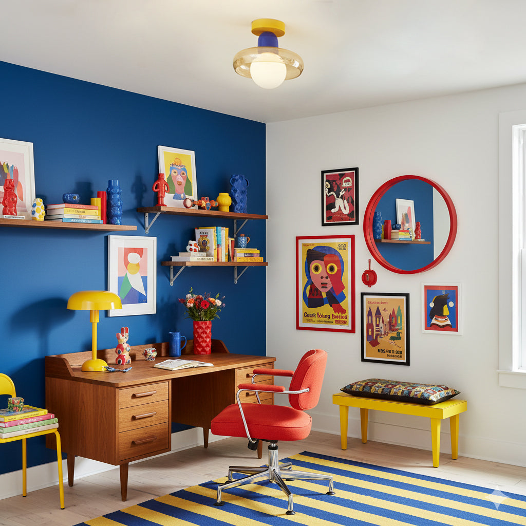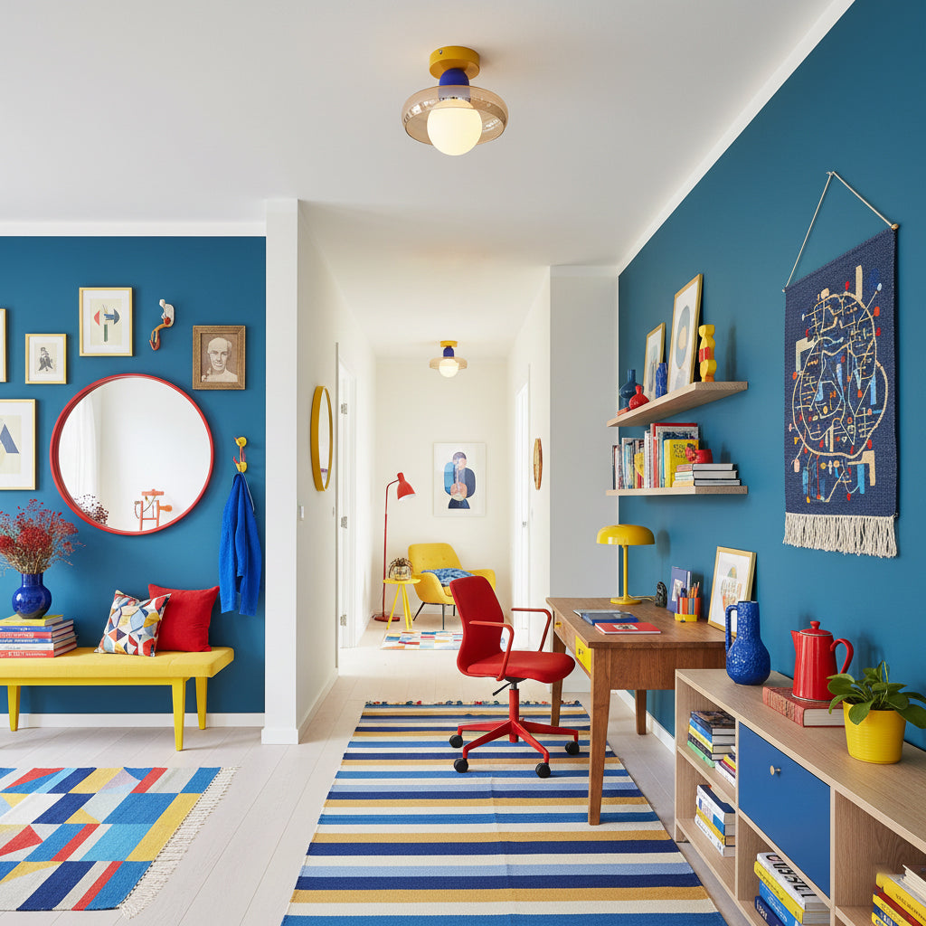 Inject your space with vibrant color and a touch of modern whimsy with the Alabax Ceiling Light. This distinct fixture blends playful. geometric forms with sophisticated materials to create a statement piece that is both functional and artful.