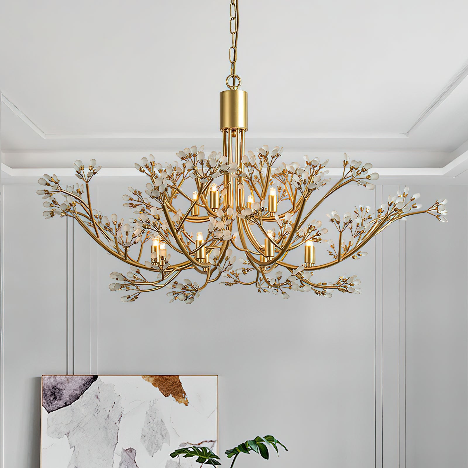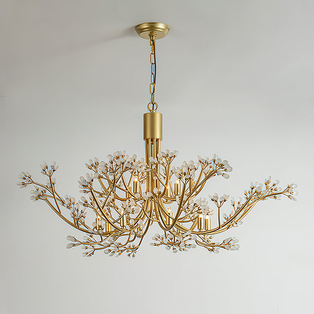 Capture the ethereal beauty of a spring garden with the Anais Crystal Chandelier. Expertly crafted from solid brass with a warm. hand-brushed finish. this centerpiece features a sprawling silhouette of delicate branches. Each limb is adorned with precision-cut crystal 'buds' that catch and refract light. mimicking the appearance of blooming flora