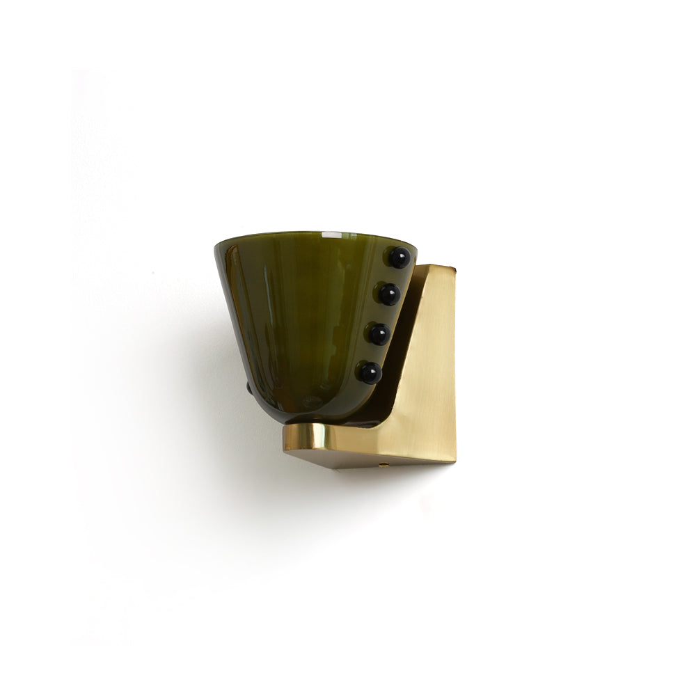 The Berries Wall Lamp is a striking piece of contemporary functional art. designed to bring a bold. sculptural presence and a rich. moody glow to your interior walls. The glass is uniquely adorned with a vertical row of 'berry' accents. adding a playful yet luxurious tactile element.