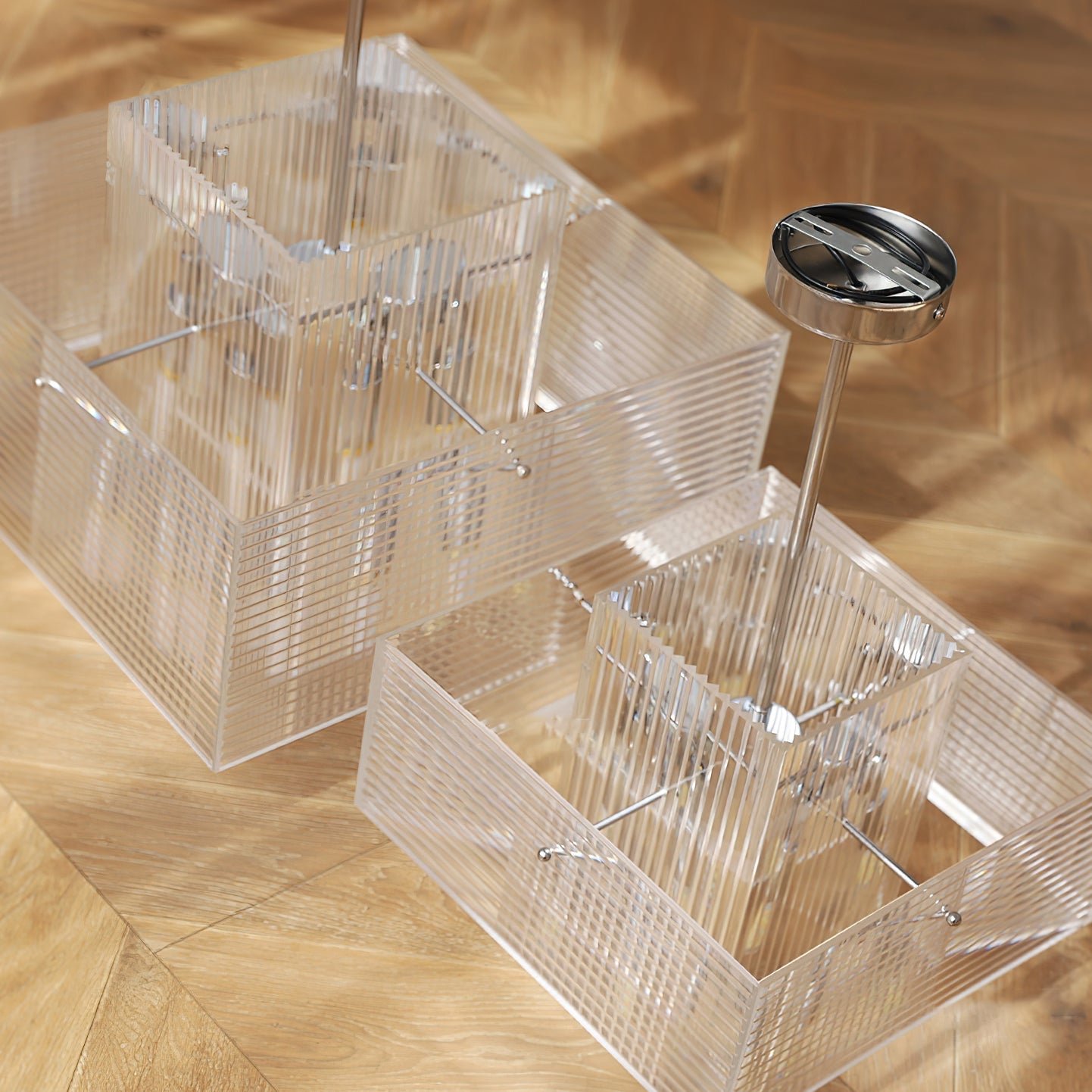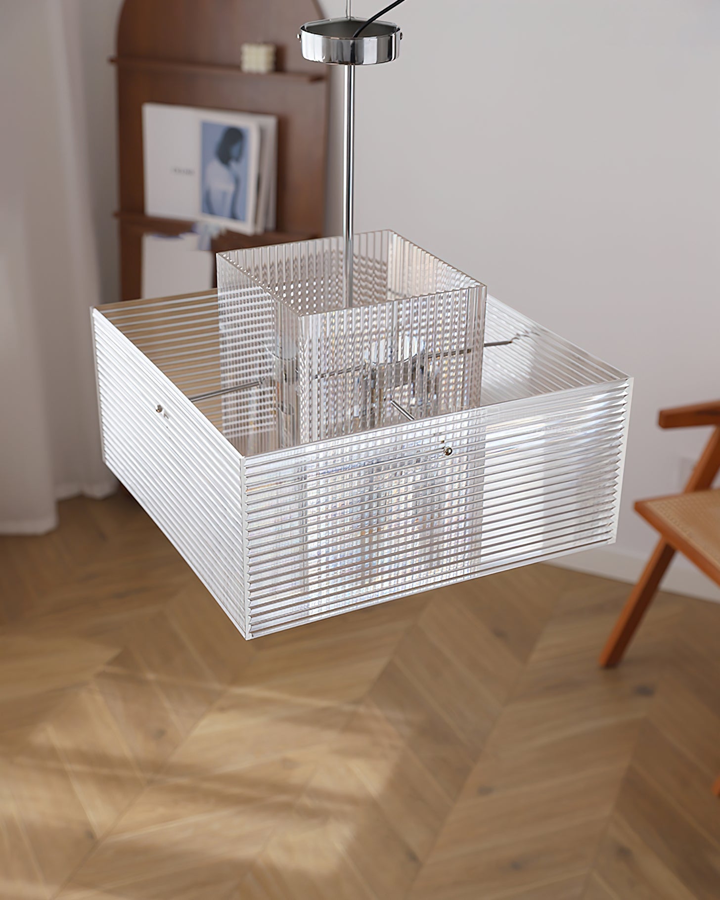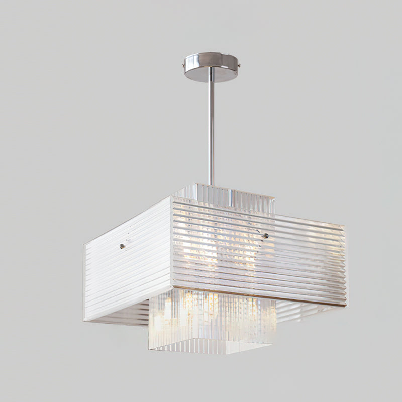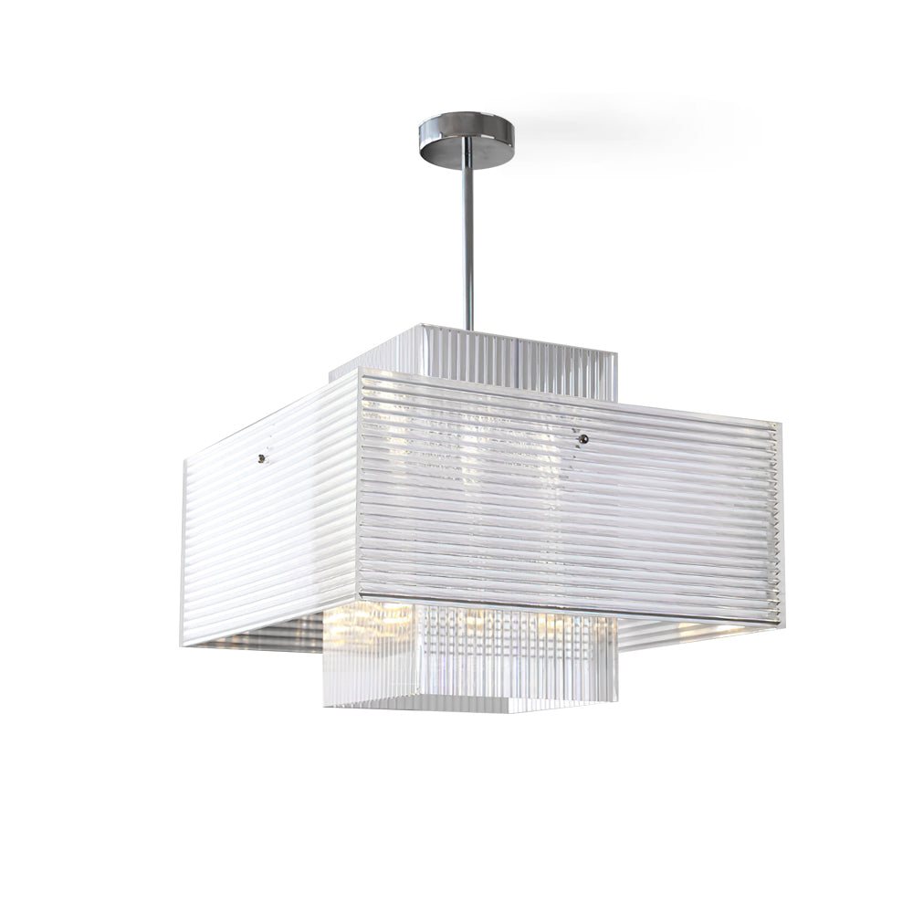 The Brenna Glass Chandelier from dekorfine brings contemporary geometry to life with a clean-lined. layered design crafted from ribbed clear glass. Its architectural silhouette plays with light and shadow. offering a modern glow that feels both structured and sophisticated. The gleaming chrome accents add a touch of polish. while the tiered glass diffusers create a soft. ambient atmosphere.