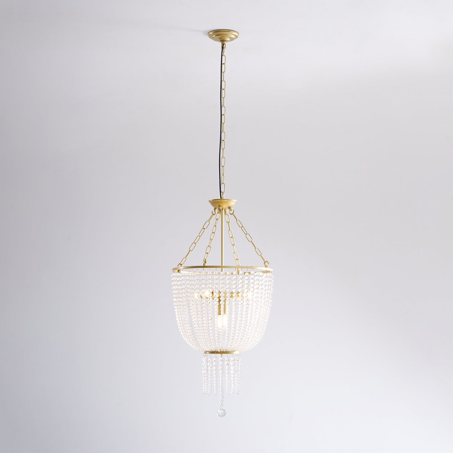The Campana Crystal Chandelier. crafted from metal and adorned with dazzling crystals. exudes timeless elegance and sophistication. Its stunning design features cascading crystal beads that beautifully refract light. creating a luxurious ambiance. Perfect for adding a touch of glamour to any room.