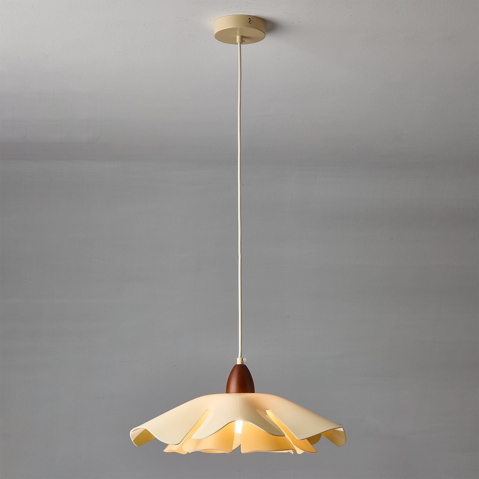 The Cenia Pendant Light by dekorfine captures the graceful essence of a blooming flower with its delicately curled acrylic petals and smooth metal finish. Suspended elegantly from the ceiling. its soft curves and warm glow bring a playful yet refined touch to kitchens. dining areas. or reading nooks. A subtle wooden accent at the top adds a hint of natural charm. making Cenia a delightful fusion of modern and organic design.