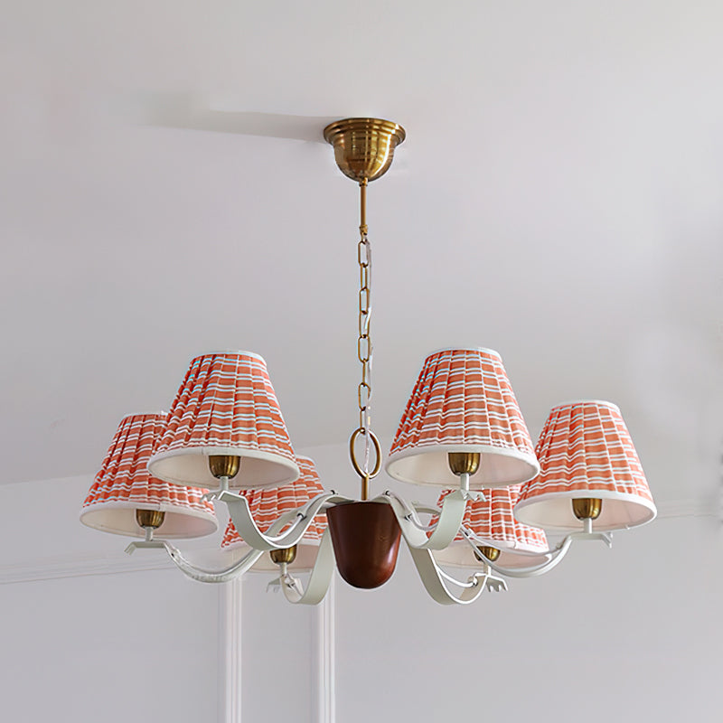 The real star of the show here are the custom fabric shades. Their fun. coral-and-white woven pattern adds a cheerful pop of color and gives off a soft. inviting glow that makes a space feel instantly cozy. We love how it feels both classic and totally modern at the same time.