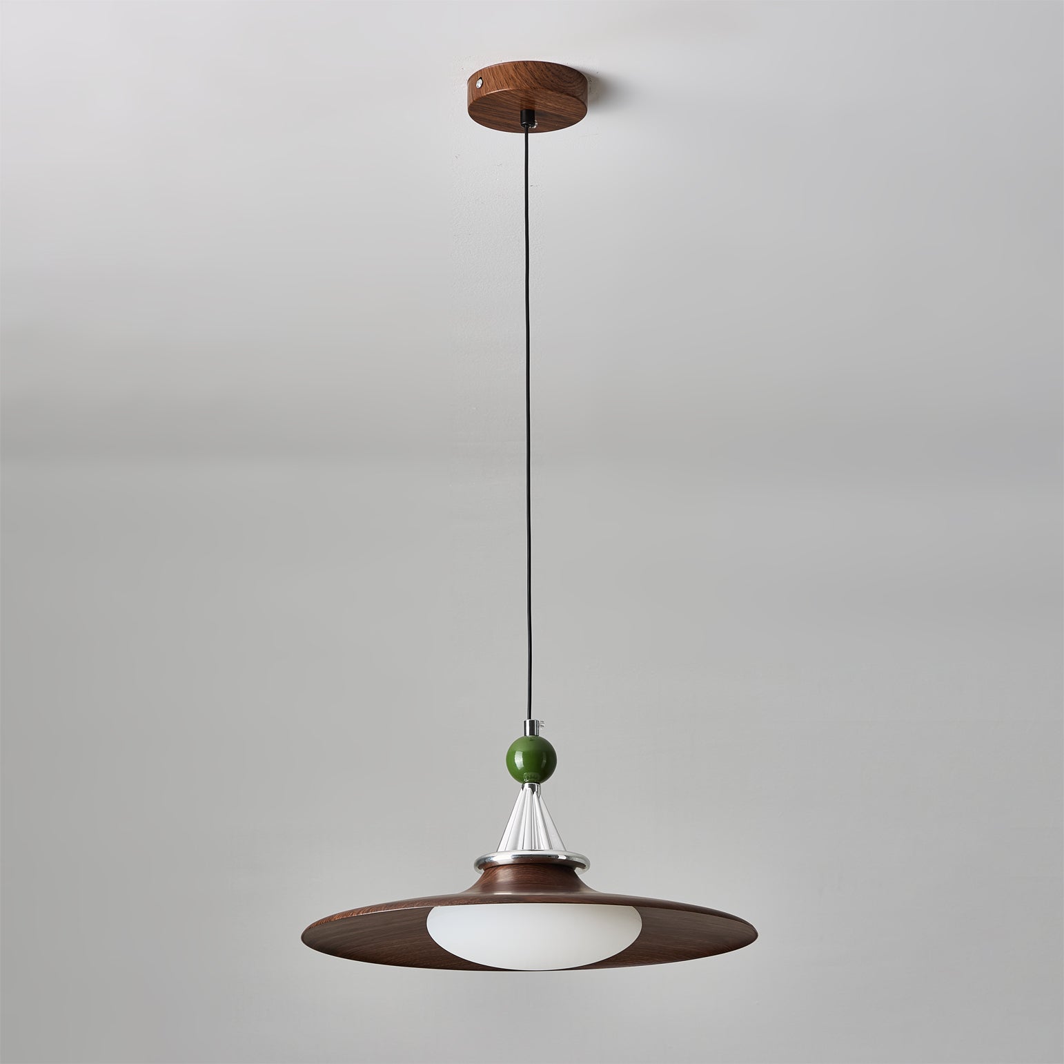 The Eden Pendant Light effortlessly blends vintage nostalgia with contemporary craftsmanship. Though constructed from durable metal. the wide saucer shade boasts a rich. realistic dark wood-grain finish that adds organic warmth to any interior.