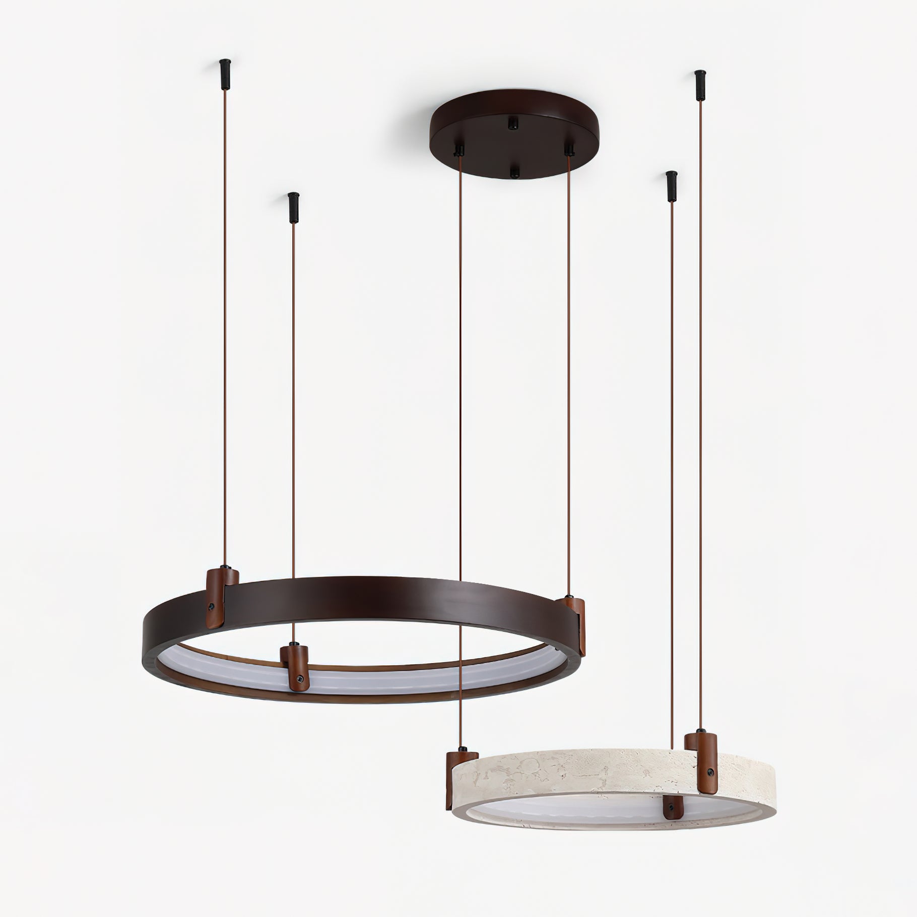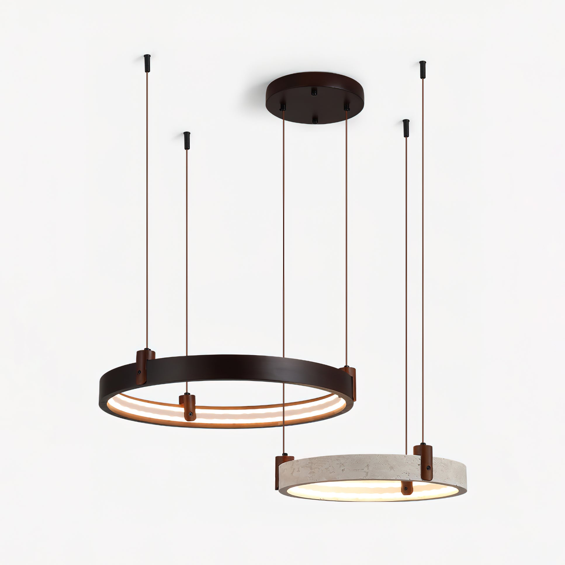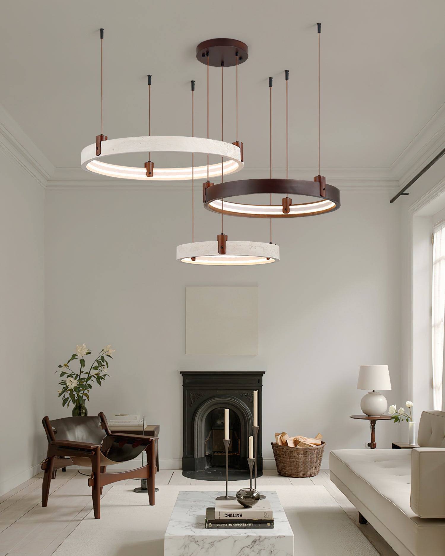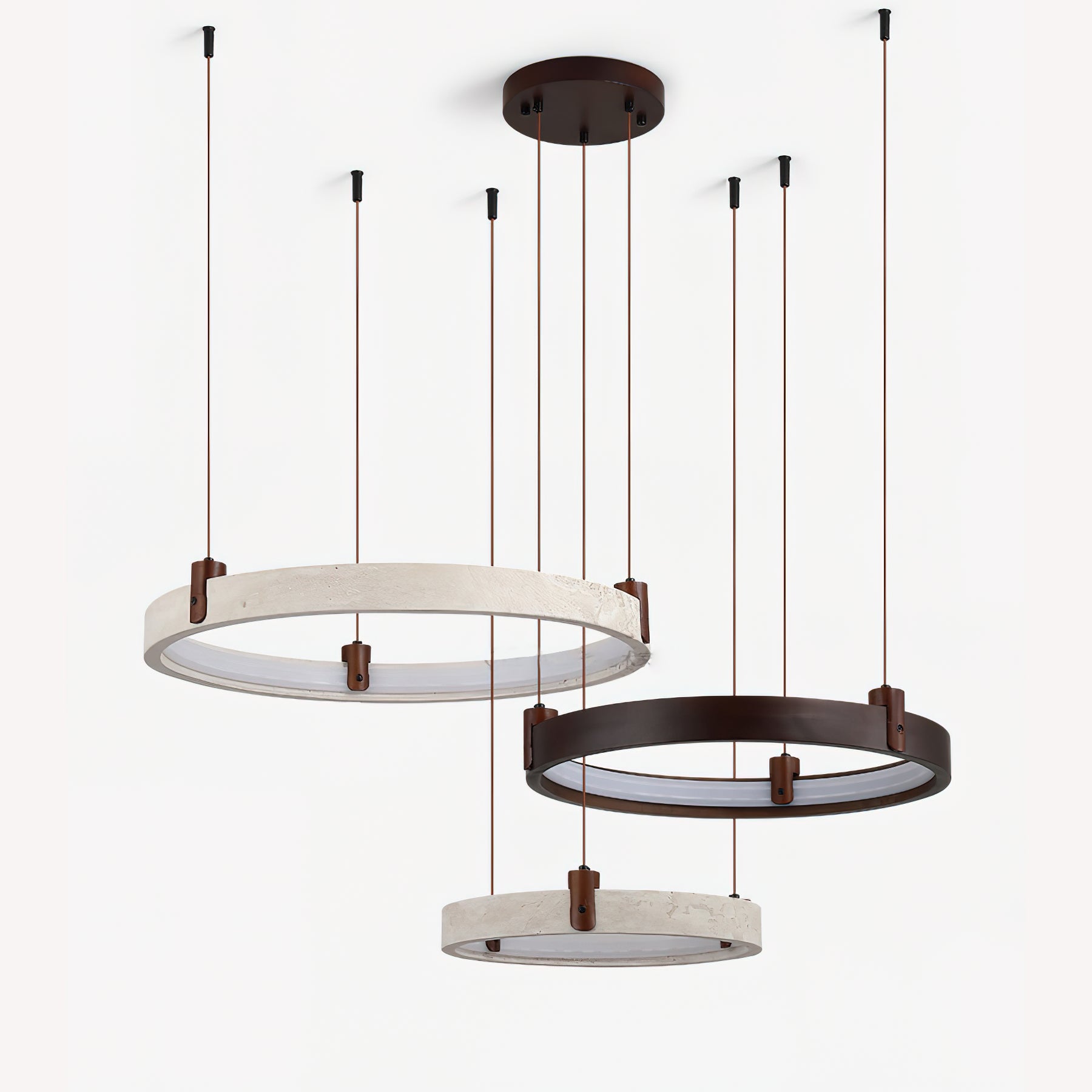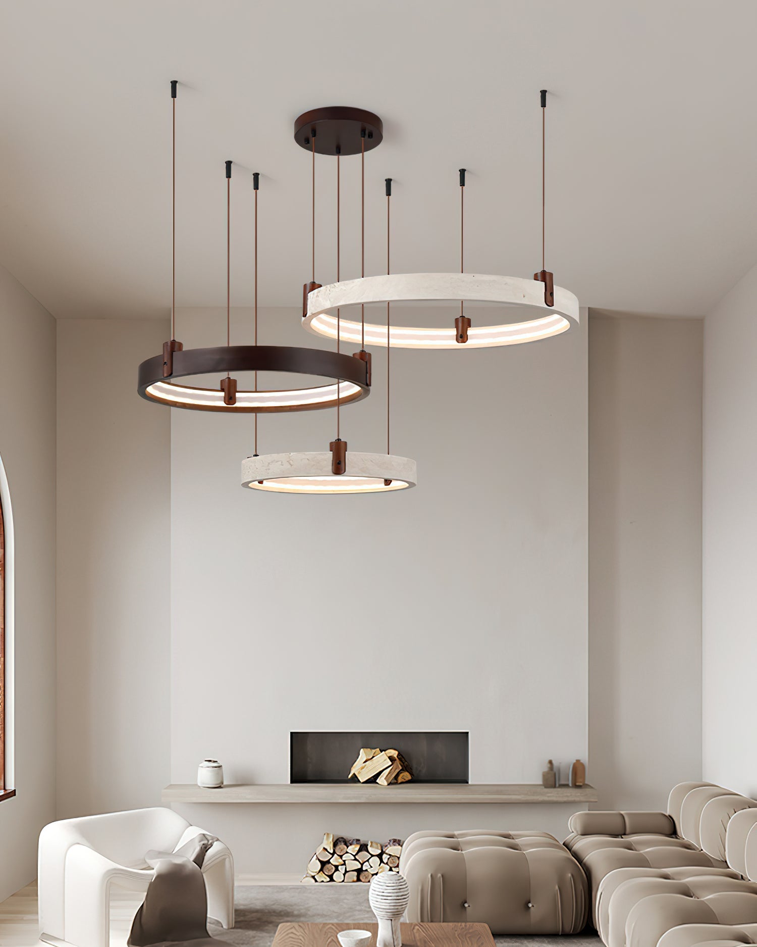 The Goeco Combination Chandelier is a masterclass in organic minimalism. designed for those who appreciate the raw beauty of natural materials. Suspended at varying heights. these sculptural rings provide soft. integrated illumination that highlights the natural veining of the stone. creating an atmosphere of 'quiet luxury' and architectural depth.