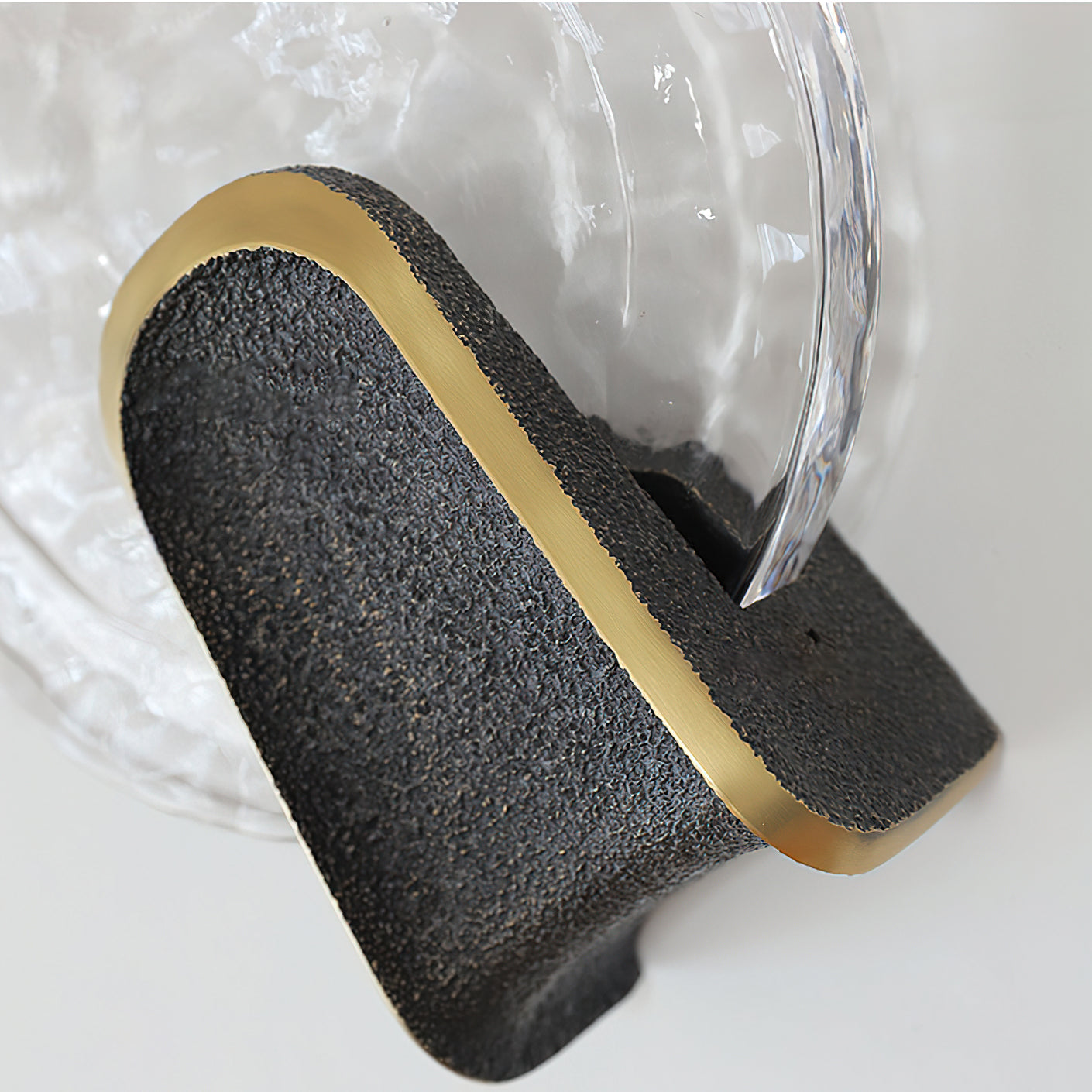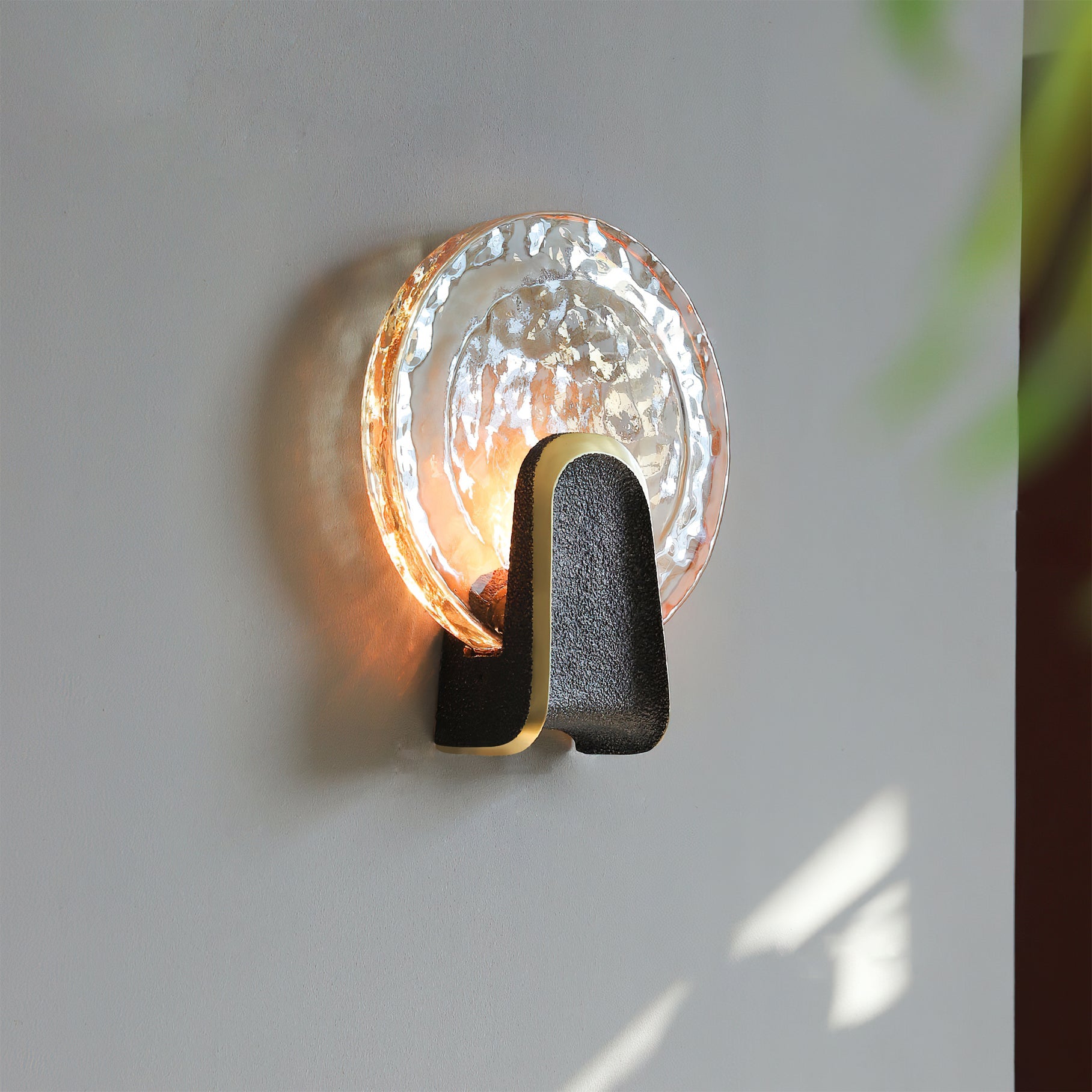 Elevate your interior with the Ingot Wall Lamp. a masterpiece of contemporary lighting design. Featuring a thick. hand-cast glass disc with a distinctive hammered texture. this fixture beautifully diffuses light to create a warm. rippling glow reminiscent of sunlight on water.