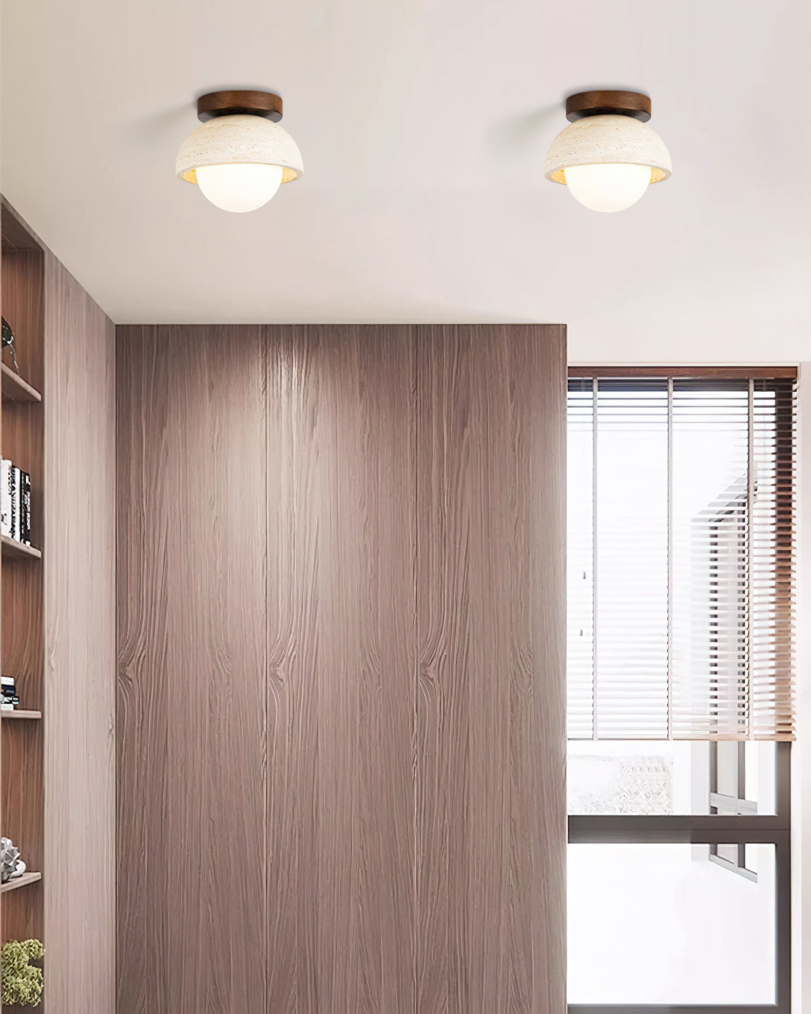 Bring the calming essence of nature into your home with the Palermo Ceiling Light. This exquisite flush-mount fixture is a study in organic contrast. featuring a rugged. porous travertine dome anchored by a rich wood base.
