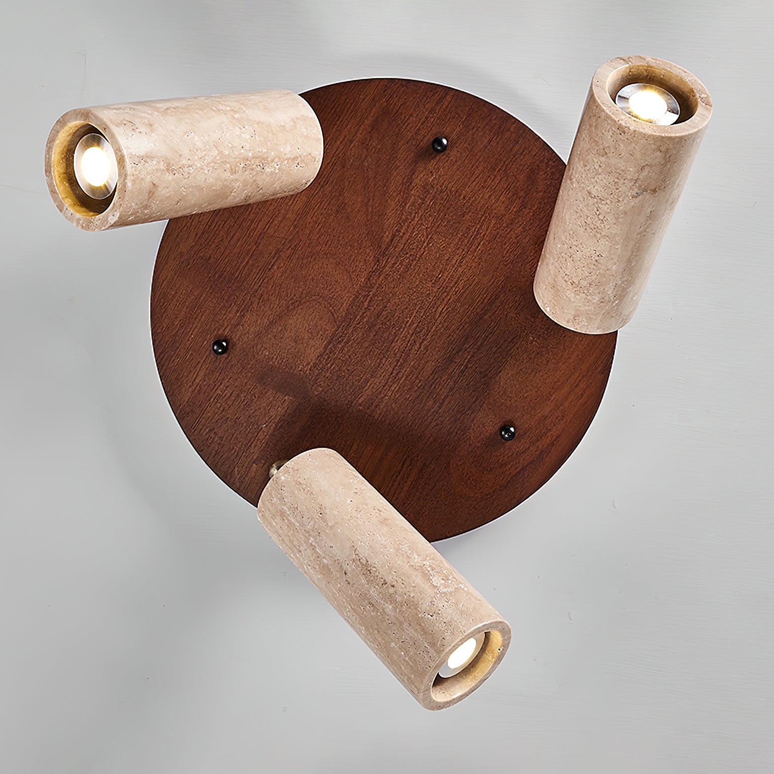 The Sandia Ceiling Light by dekorfine brings a sculptural blend of natural materials and clean geometry to your ceiling. Crafted from richly grained wood and smooth yellow travertine. each cylindrical spotlight is adjustable. allowing you to direct light exactly where it's needed. The warm stone texture and solid wood base create an earthy yet modern statement€”perfect for hallways. kitchens. or living spaces seeking both form and function.