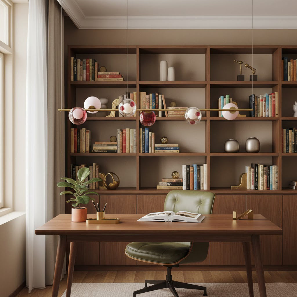 The Sedna Linear Chandelier dekorfine is a playful yet sophisticated lighting piece that brings a touch of artistry into any room. Crafted from metal and glass. it features a slim. elegant rod balanced with colorful glass orbs that seem to float effortlessly in space. The combination of clear. white. and red-toned spheres creates a striking visual rhythm. making it not only a light source but also a conversation-starting centerpiece.