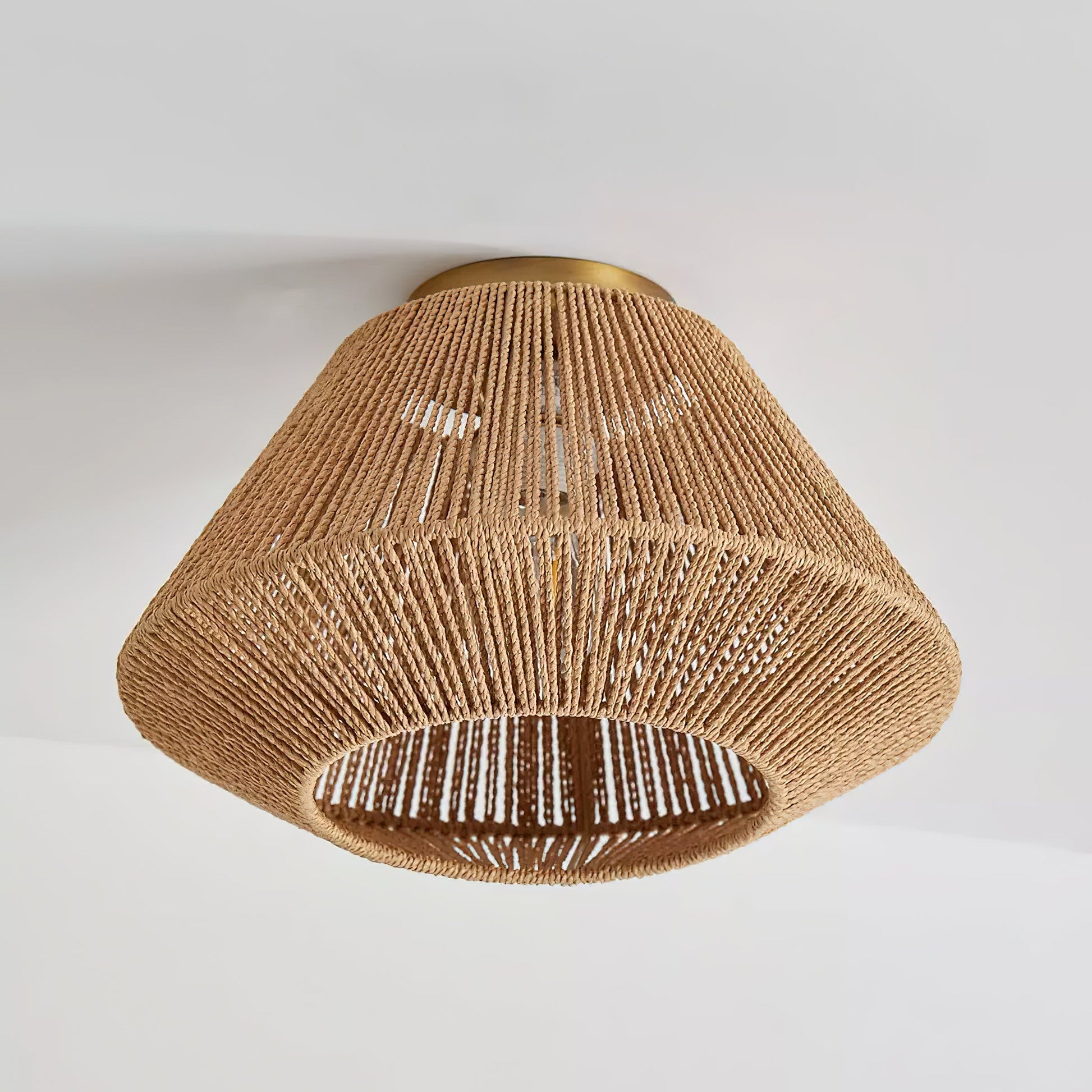 The Sierra Ceiling Light from dekorfine blends earthy charm with a bold geometric silhouette. Featuring hand-wrapped hemp rope over a sturdy metal frame. this design brings natural texture and artisanal warmth to any room.