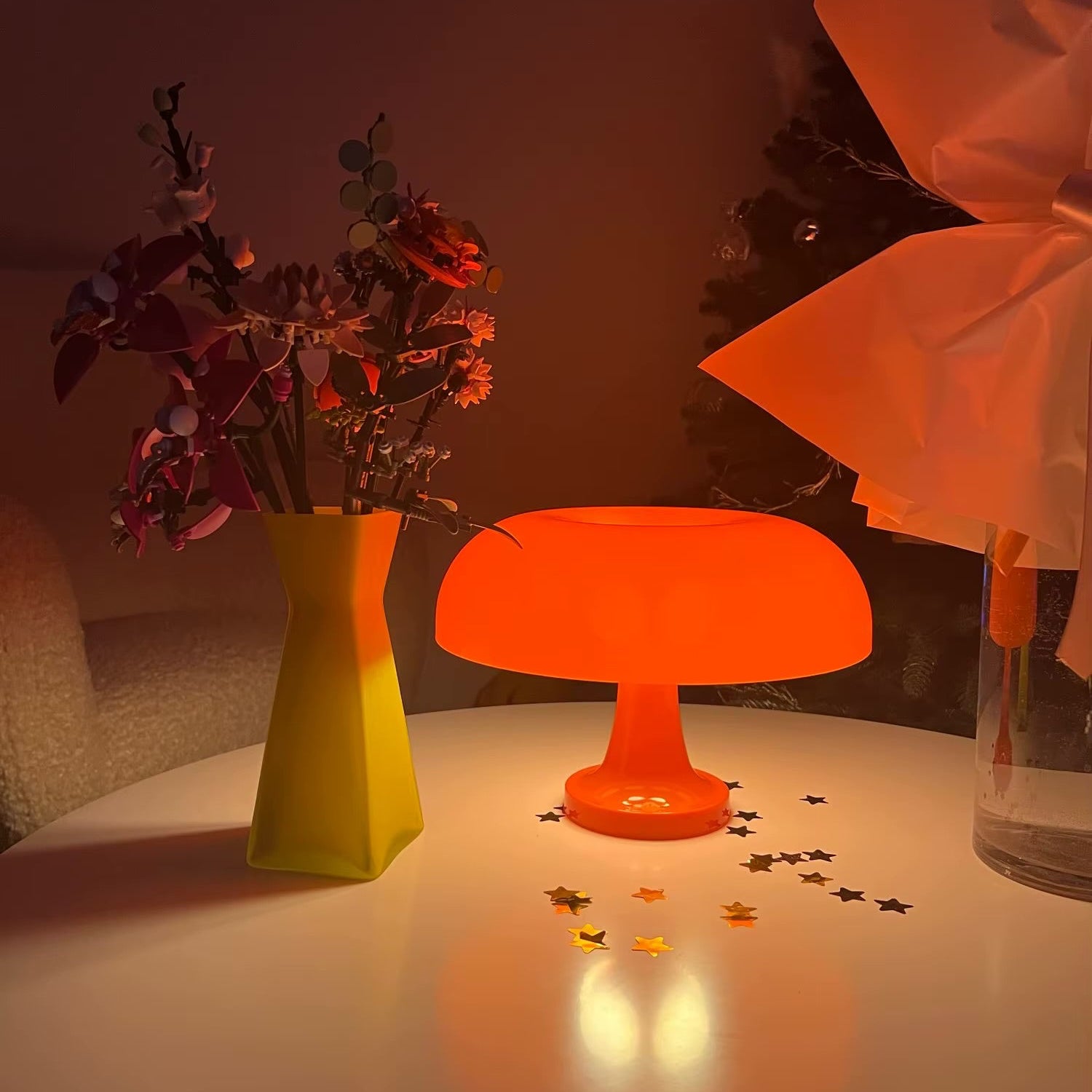 The Classic Shroom Table Lamp embodies the essence of modern Bauhaus art, seamlessly blending form and function. Its distinctive mushroom shape and vibrant orange hue make it a standout piece, ideal for enhancing the ambiance of bedrooms, living rooms, and contemporary spaces.